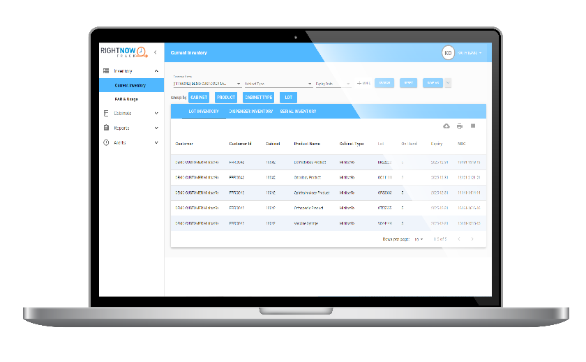 RightNow Track™ is a web-based portal connecting customers to RightNow Inventory™ solution information within their facility or multisite enterprise. Through RightNow Track™, users can concisely view Forward-Deployed Inventory data and download reports.